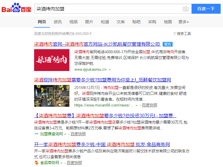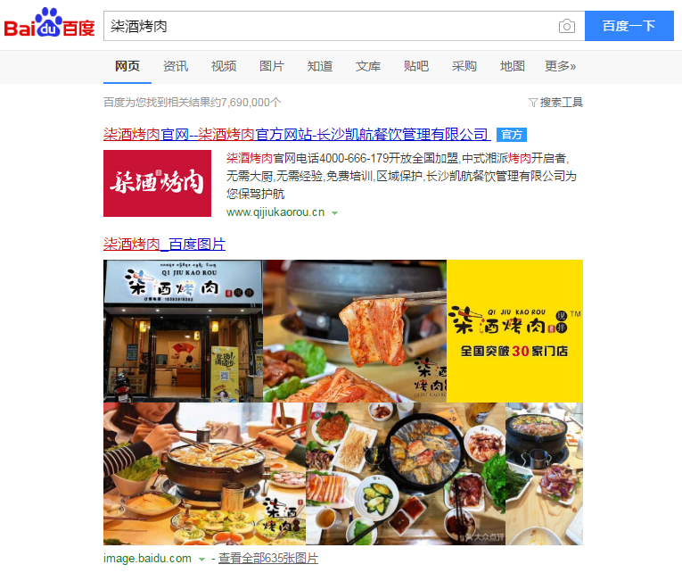 然而在公司大力推廣招商加盟,開拓市場之際,卻被一些假冒山寨品牌詐稱代理加盟,引誘投資者加盟考察和費(fèi)用支付等等,嚴(yán)重?fù)p害了品牌的名譽(yù)。為了維護(hù)自己品牌的名稱權(quán)、聲譽(yù)權(quán),柒酒烤肉在發(fā)布鄭重聲明之外,還主動與我司合作申請了百度信譽(yù)認(rèn)證,申請了百度實(shí)地認(rèn)證、官網(wǎng)認(rèn)證等多個產(chǎn)品,通過百度認(rèn)證之后,目前在百度無論搜索公司名稱還是品牌名稱,均可以在首頁看到其官方標(biāo)識,使得網(wǎng)民可以一目了然的找到品牌方的官方網(wǎng)站,避免了假冒山寨的侵害。